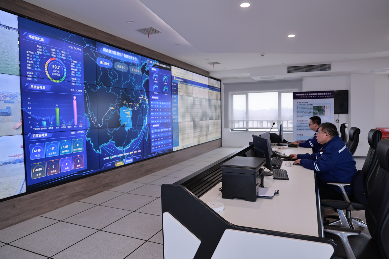 2025年1月28日除夕夜,湖南省城陵磯港口集團長沙新港碼頭燈火通明,機聲轟鳴,一派繁忙景象,長沙新港公司黨委委員、副總經(jīng)理鄭美洲來到港區(qū)開展春節(jié)慰問活動,為堅守崗位的職工送上誠摯的感謝和溫暖,并致以節(jié)日的問候和新年美好的祝福。 “今年除夕,生產(chǎn)任務(wù)依舊繁重,調(diào)度中心要多關(guān)注生產(chǎn)作業(yè)情況”。鄭美洲叮囑到。在5樓智能調(diào)度中心監(jiān)控視頻里,總能看到一個個熟悉的身影穿梭在港區(qū)各作業(yè)面:北片區(qū)4號倉庫正在緊張有序的作業(yè)著,碼頭前方滿載庫利塊的船舶正在5號吊機下開始卸貨,長沙新港專用鐵路線上停放著75節(jié)車廂,等待裝車發(fā)運,一切如同往日。唯一不同的是辦公樓墻面上懸掛的“福”字和中國結(jié),在夜色的襯托下,渲染了春節(jié)的喜慶氛圍。