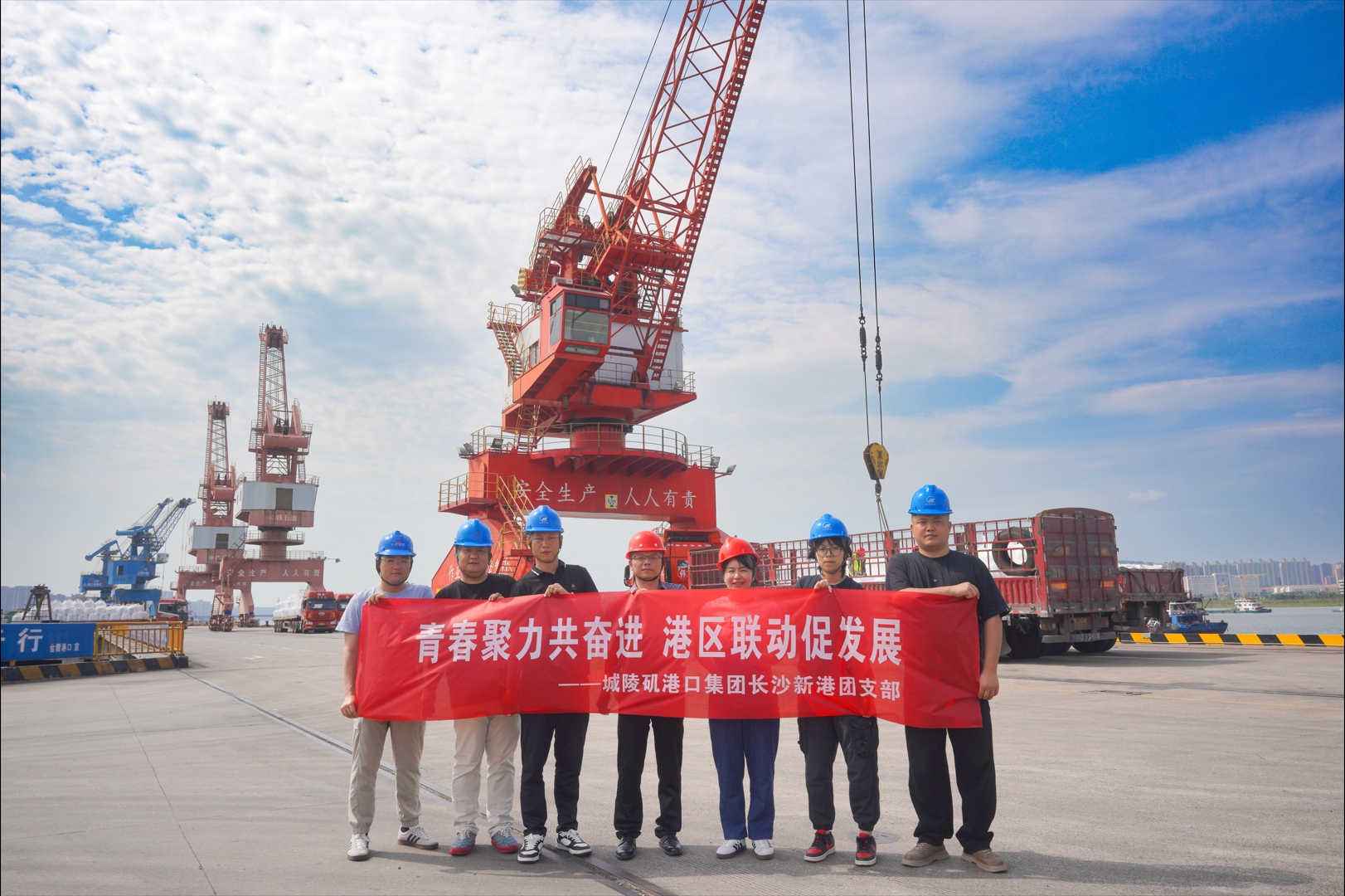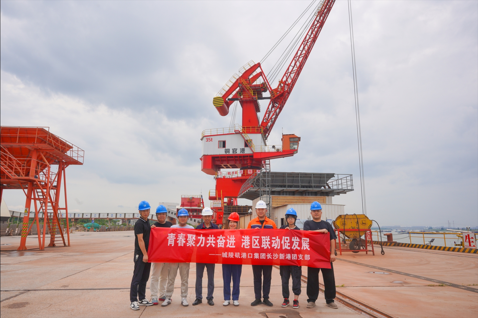 在五四青年節(jié)來臨之際,5月20日,湖南城陵磯港口集團(tuán)長沙新港團(tuán)支部組織團(tuán)員青年開展業(yè)務(wù)交流活動,先后走訪金霞港、民營碼頭和銅官港,實(shí)地學(xué)習(xí)港口作業(yè)流程,交流先進(jìn)管理經(jīng)驗。  第一站金霞港,元明粉噸袋正跟著岸吊裝入運(yùn)輸車輛。在鋼材裝卸區(qū),龍門吊正將卷鋼整齊碼放入室外堆場,現(xiàn)場技術(shù)員演示了卷鋼防滾動固定技巧,團(tuán)員青年用手機(jī)記錄下操作細(xì)節(jié),待活動結(jié)束后再針對細(xì)節(jié)進(jìn)行學(xué)習(xí)總結(jié)。 來到砂石運(yùn)輸為主的民營碼頭,碼頭負(fù)責(zé)人帶青年們走進(jìn)作業(yè)核心區(qū),空中霧炮噴出的水幕與除塵風(fēng)機(jī)聯(lián)動,將粉塵牢牢控制,大家紛紛贊嘆環(huán)保理念已深入人心。 踏入銅官港岸線,青年們瞬間被生產(chǎn)場景所吸引,皮帶機(jī)運(yùn)輸系統(tǒng)如同港口的鋼鐵動脈,將礦石從貨輪高效輸送至散貨大棚內(nèi),堆取料機(jī)礦石分類堆放,既減少了露天堆放的風(fēng)耗損失,又通過霧化降塵技術(shù)守護(hù)藍(lán)天。